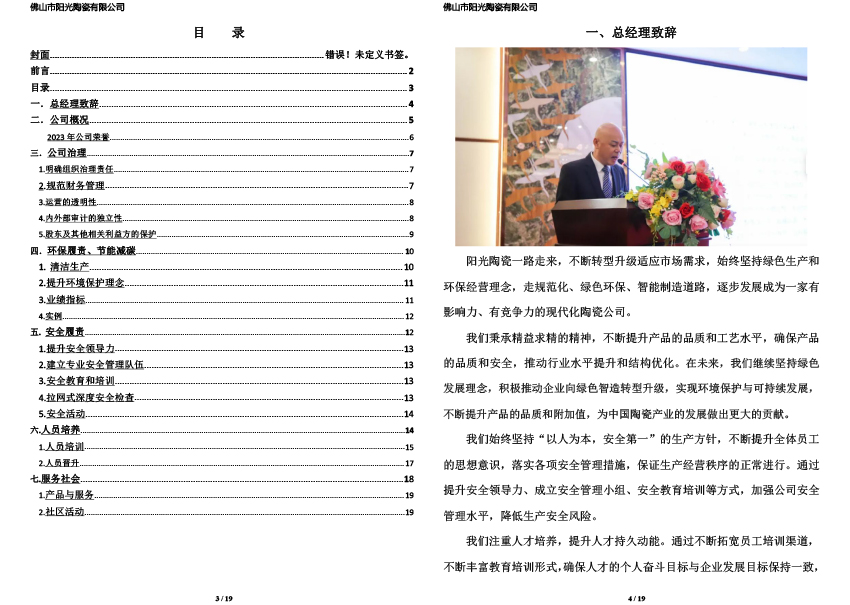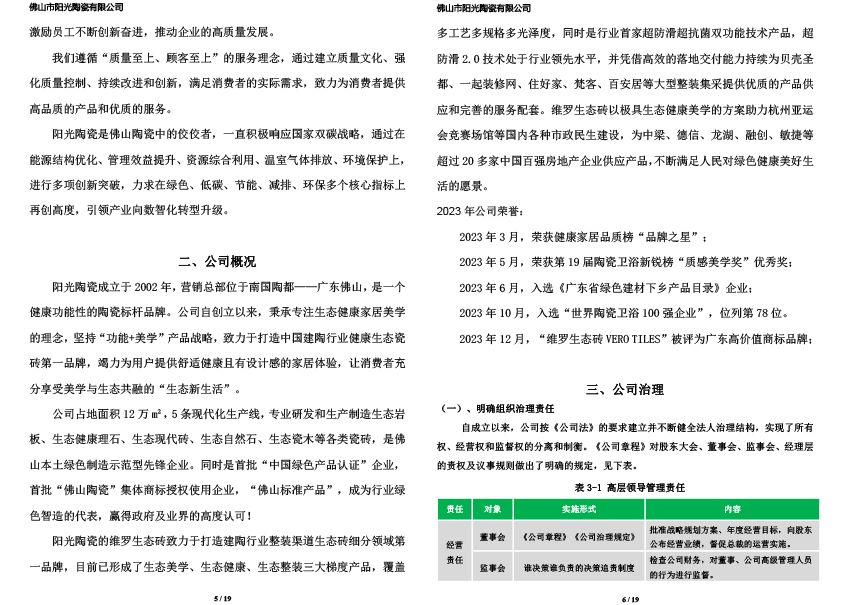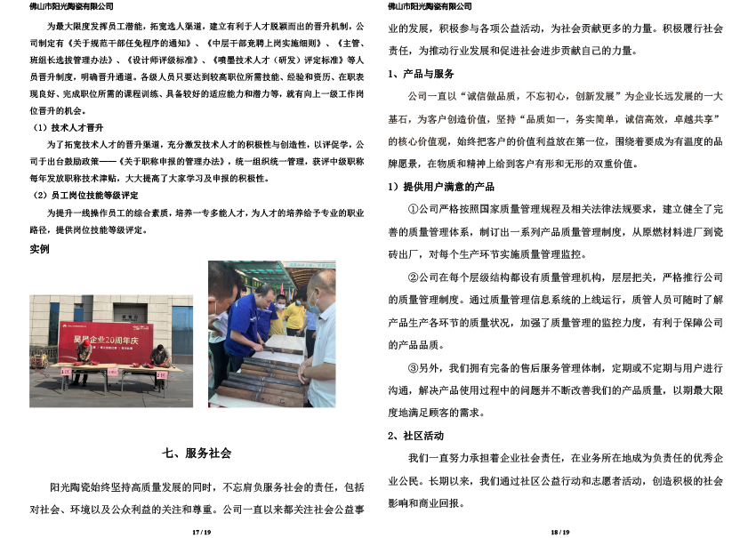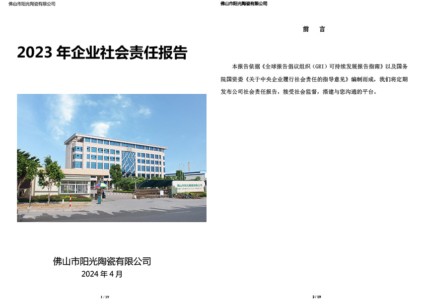 佛山市陽(yáng)光陶瓷有限公司2023年社會(huì)責(zé)任報(bào)告
